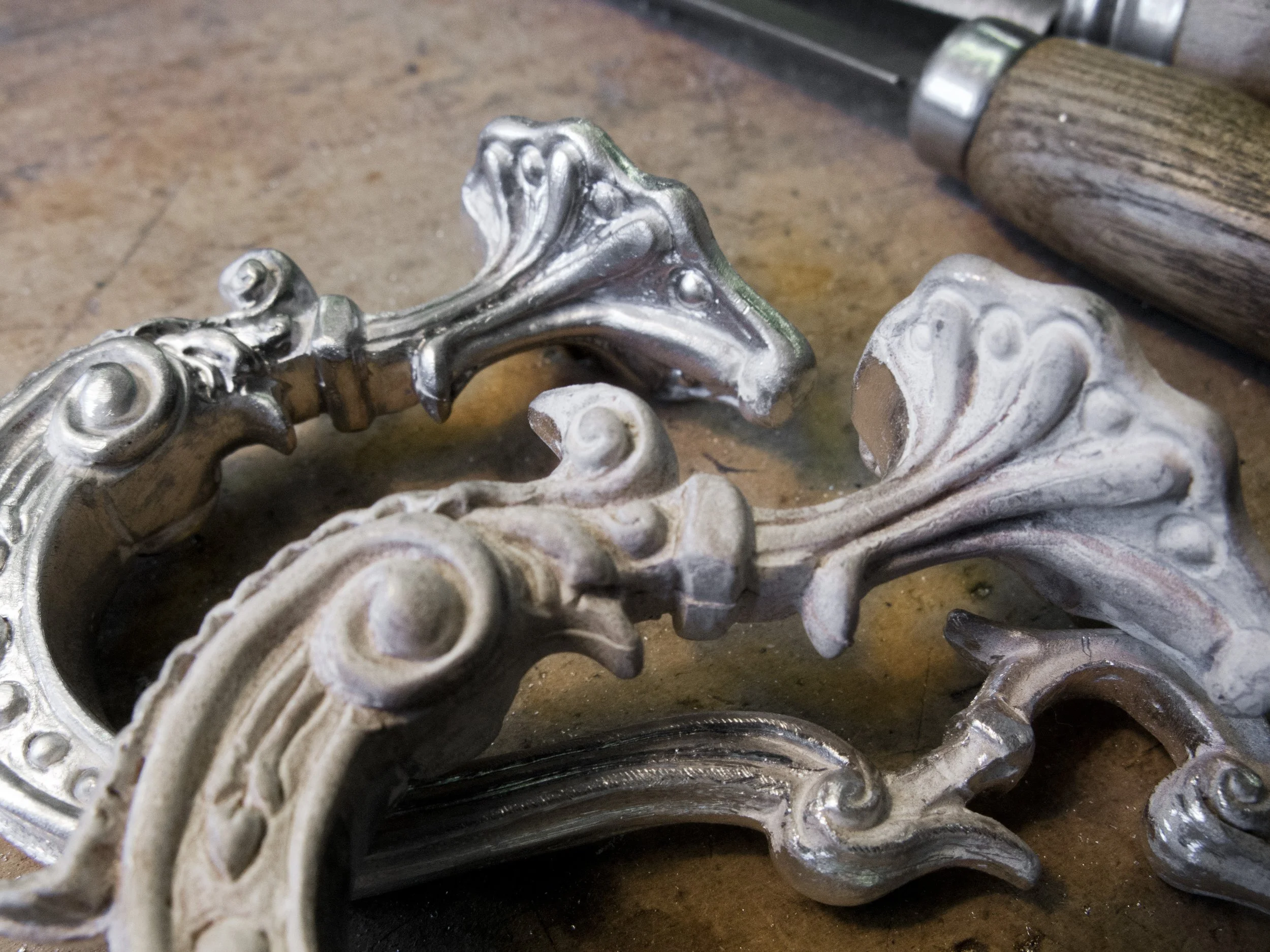 The Details: Look closely at the surface and you will see the intricate hand chased details. Chasing is an ancient technique where the silver is manipulated from the front to create a raised, ornamental pattern.